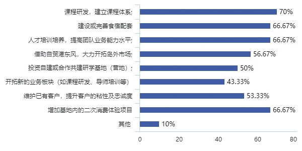 建議島內基地應加大人才培養(yǎng),提高團隊業(yè)務能力。同時建立完善的研學課程體系,加快特色產品創(chuàng)新迭代,提高與島外行業(yè)間合作聯(lián)動。