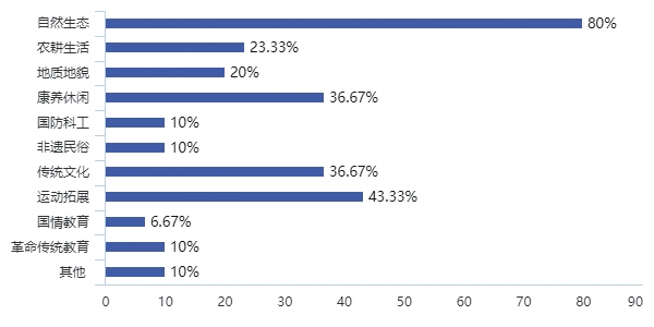 1.基本情況:基地近5年發(fā)展迅速。參調基地中80%以自然生態(tài)資源為依托,形成以自然教育為核心,其次帶有運動拓展、傳統(tǒng)文化、康養(yǎng)休閑等類型的主題課程。