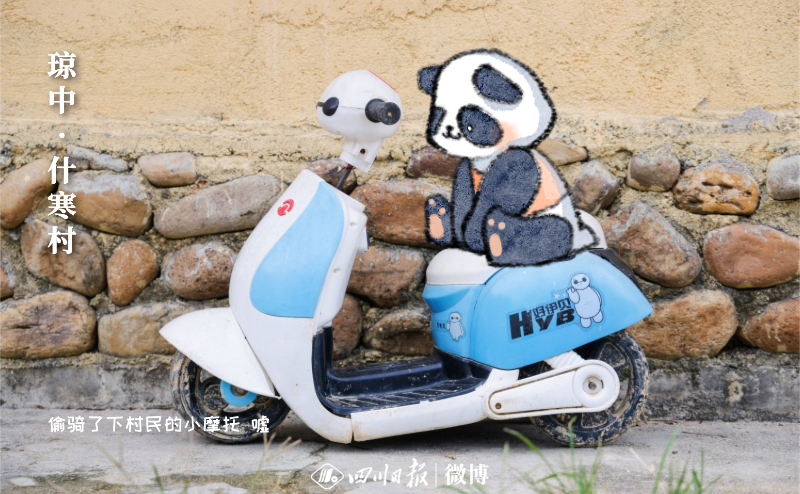 朱軻瑤將到訪的地點(diǎn)進(jìn)行拍照,再將一些適合的川寶造型P進(jìn)圖片,所以才有了川寶瓊海南強(qiáng)村吃水果、萬(wàn)寧鳳凰九里書(shū)屋看書(shū)等9張明信片。
