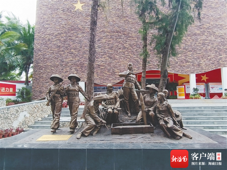 6月21日,在三亞市西島女子民兵連紀念館前,紅色的幕布緩緩落下,栩栩如生的雕塑出現在世人眼前。創作者許鴻飛用雕塑書寫了他與西島女民兵的故事。