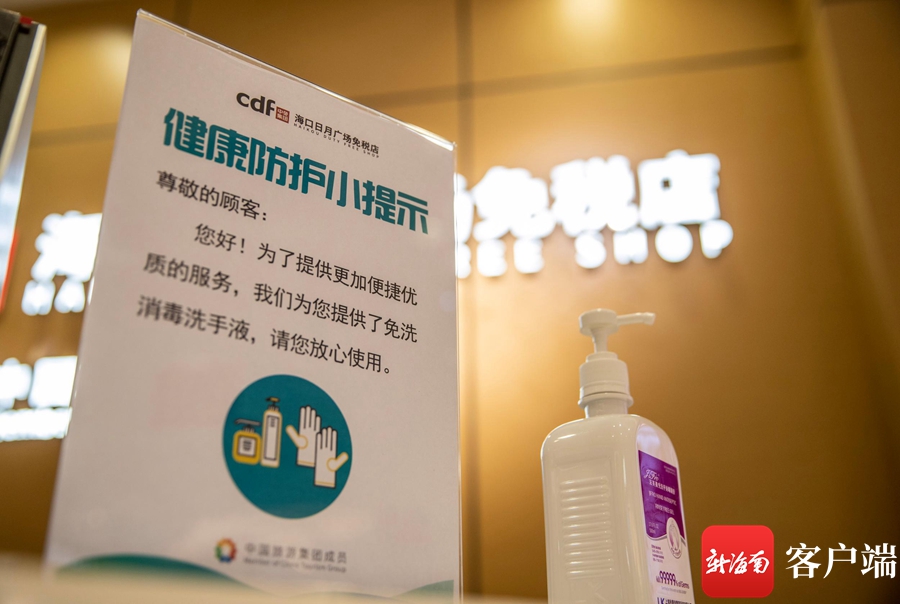 免稅店在多個(gè)位置放置免洗消毒洗手液供消費(fèi)者使用。記者 劉洋攝