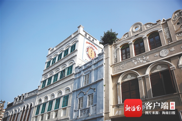 與海口鐘樓隔路相望的是海口騎樓老街。海口騎樓老街是國內騎樓建筑保留規模大、保存完好的歷史文化街區。這里的樓宇借鑒了當時的南洋建筑風格,略顯斑駁的墻體留下了歲月的痕跡。