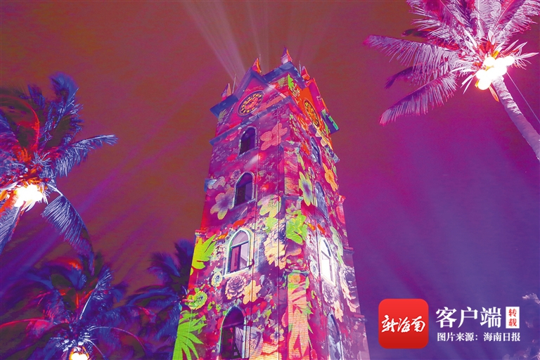 不僅如此,海口鐘樓還“披上”了“新衣”。今年,海口市龍華區推出《光景·鐘樓》主題光影秀。在歷史文化與光影藝術的交融中,一幀幀畫面講述著動人的故事,賦予了海口鐘樓全新氣象,吸引不少市民游客前去觀賞。
