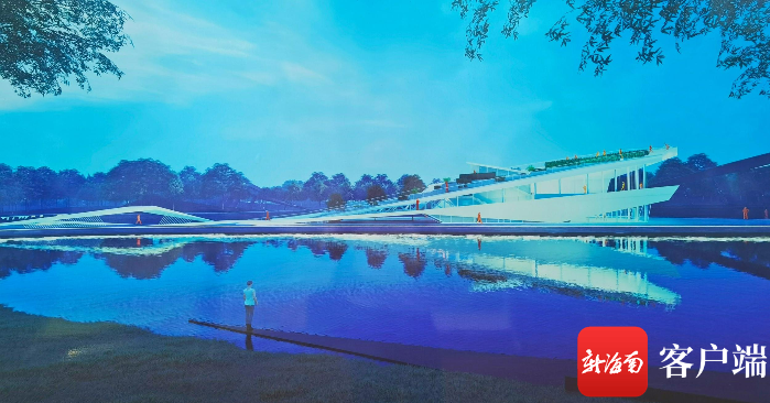 游客中心的效果圖,游客中心以“自然容器”為設計概念,將海南傳統建筑屋頂形式進行倒置作為建筑形態的出發點。記者 汪承賢 攝