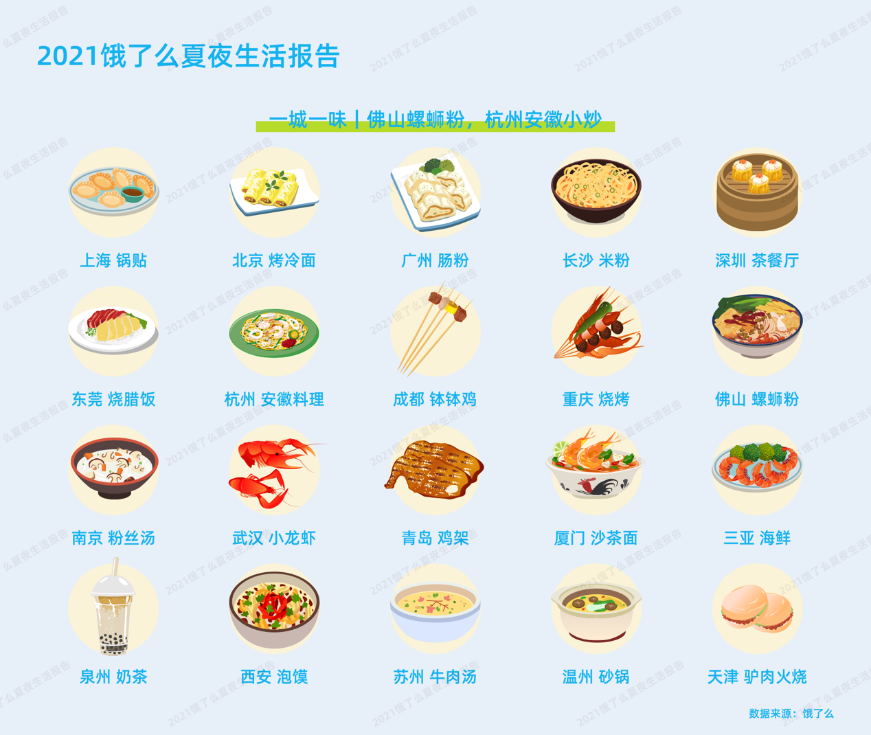 冰品和小龍蝦依舊是今年夏季最熱門的夜宵品類?!秷蟾妗凤@示,入夏以來的深夜時段(21:00-次日6:00),餓了么平臺上飲料冰品和小龍蝦的訂單量環(huán)比分別增長4倍和1倍。同時,隨著越來越多年輕人自律意識和健康生活觀念的增強(qiáng),水果撈、果切和沙拉等健康夜宵也開始在今夏走紅,訂單量增幅均在50%以上。