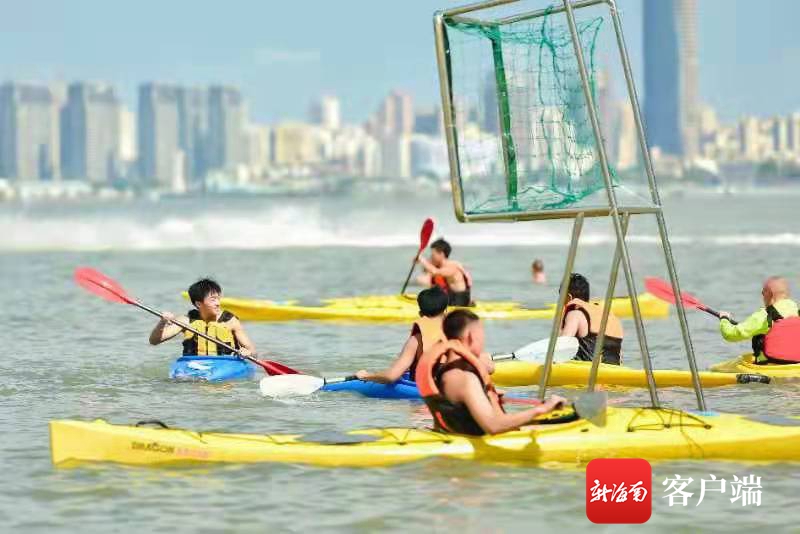 本次皮艇球體驗日活動十分豐富,包括現場教學、表演賽、水上體驗和互動游戲等。來自哈爾濱的游客吳乙成參加了皮艇球體驗活動。他說,他們一家特意來海南感受大海、陽光和沙灘,到海口西海岸假日海灘游玩正好碰上這個活動。“皮艇球這個項目以前從來沒見過,很高興能和孩子一起體驗這項新運動,可以讓孩子勇于接受挑戰,感受團隊合作精神。”