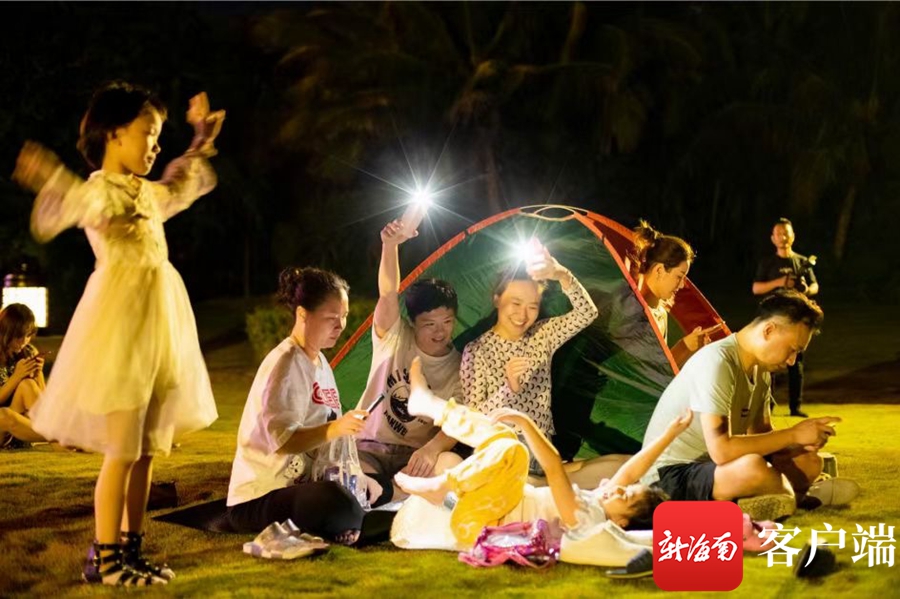 “星空部落野營”吸引了不少游客參與,他們在海邊草地或沙灘露營,燃起篝火,聆聽鄉(xiāng)村音樂,體驗不一樣的樂趣。
