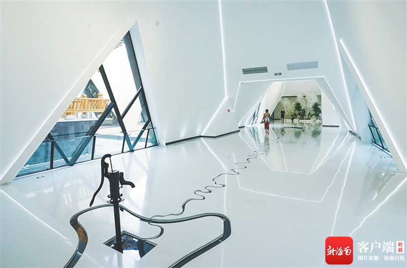 “您剛才看到的水中小島,是我們的植物中庭,可以把它看作一片微型的熱帶雨林,設計師意在給參觀者帶來一種理性自然森林的觀感,這處水簾模仿的是海南中部山區(qū)的瀑布。”該藝術館相關負責人王女士介紹,言·藝術館的設計融入了很多海南的特色元素,比如熱帶雨林、火山熔巖、飛瀑等。公司花重金打造這樣一座藝術館,是希望給市民提供一個與空間、時間、自我對話的地方。