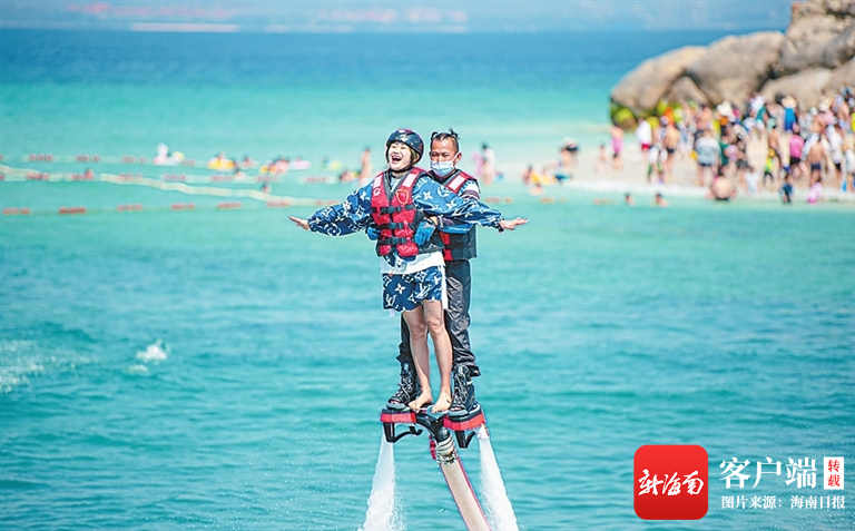 游客在蜈支洲島景區(qū)體驗(yàn)水上項(xiàng)目。阮琛 攝