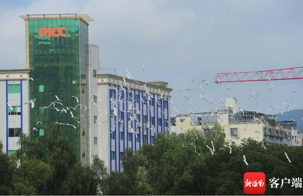3月26日,成群的白鷺在三亞河飛舞。記者 沙曉峰攝