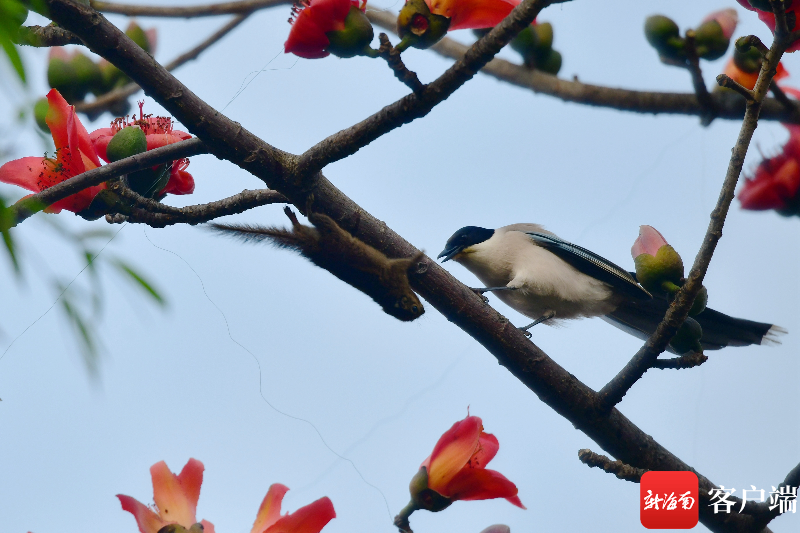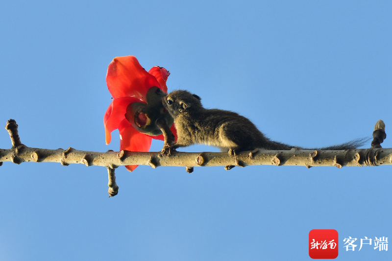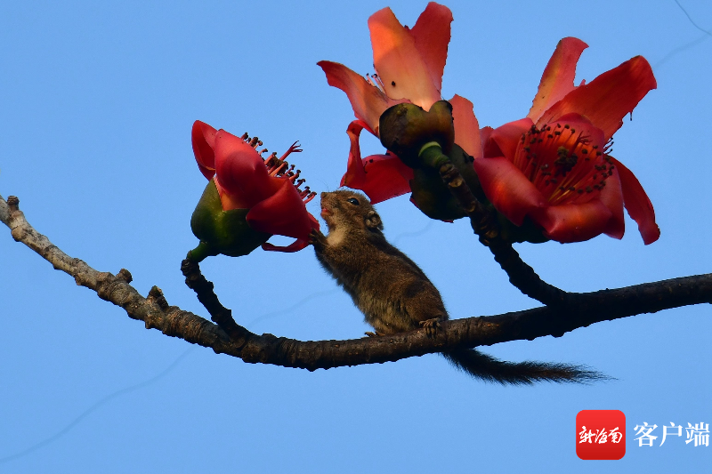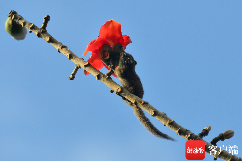 小松鼠在木棉樹上享用大餐。記者 陳衛東攝