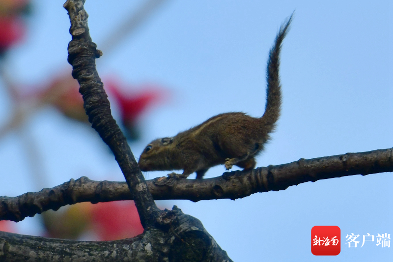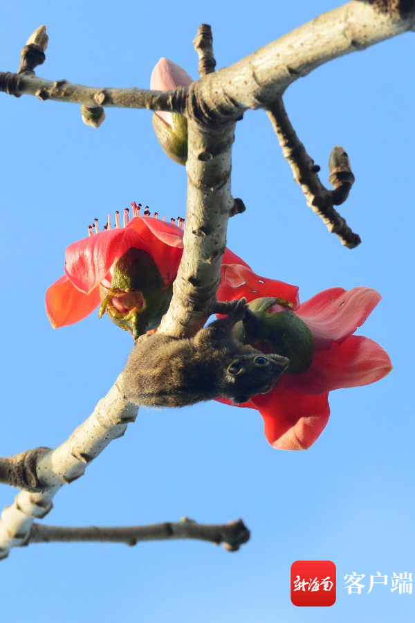 木棉樹上的小松鼠。記者 陳衛東攝