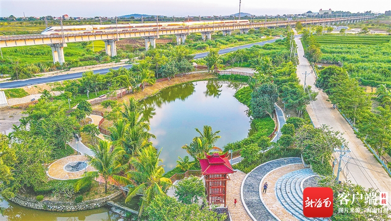 ?動車從昌江烏烈鎮道隆村鄉村公園旁飛駛而過。海南日報記者 陳元才 通訊員 楊耀科 攝