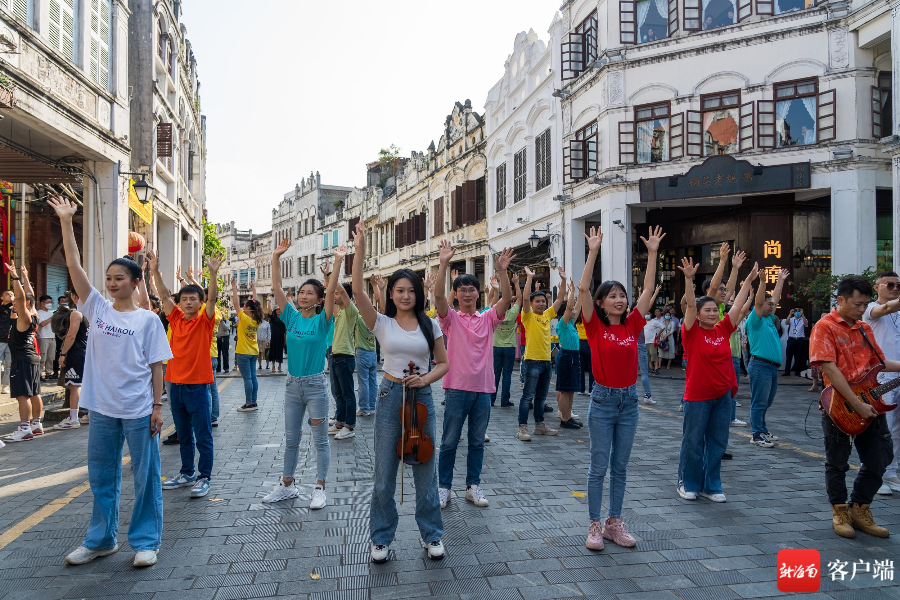 “現場非常熱鬧,感覺百年騎樓老街也‘活’起來了,以前覺得騎樓建筑比較老舊,現在來老街能感受到傳統與現代氣息的交融。”??谑忻駰钕壬f,自己偶爾來騎樓老街,每次都驚喜于這里的變化,希望能發展成為旅游特色街區。