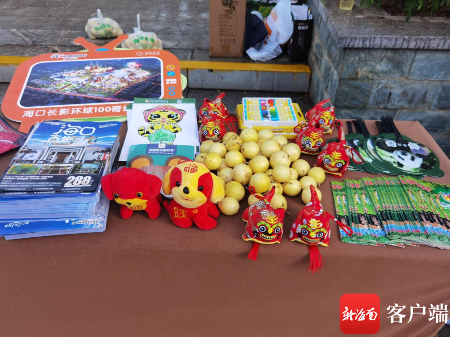 活動現場給市民游客準備禮品。海口市旅行社協會供圖