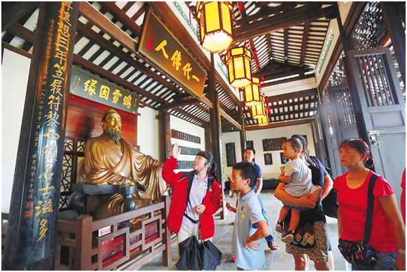 ↑游客在儋州市東坡書院品文化。海南日報記者 張杰 攝