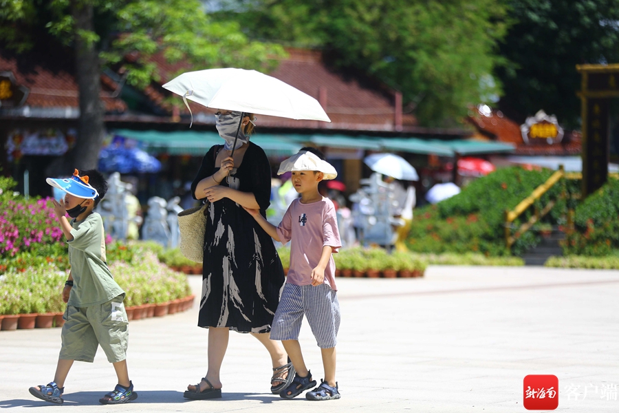 7月14日,游客在三亞鹿回頭景區(qū)游玩。記者 沙曉峰 攝