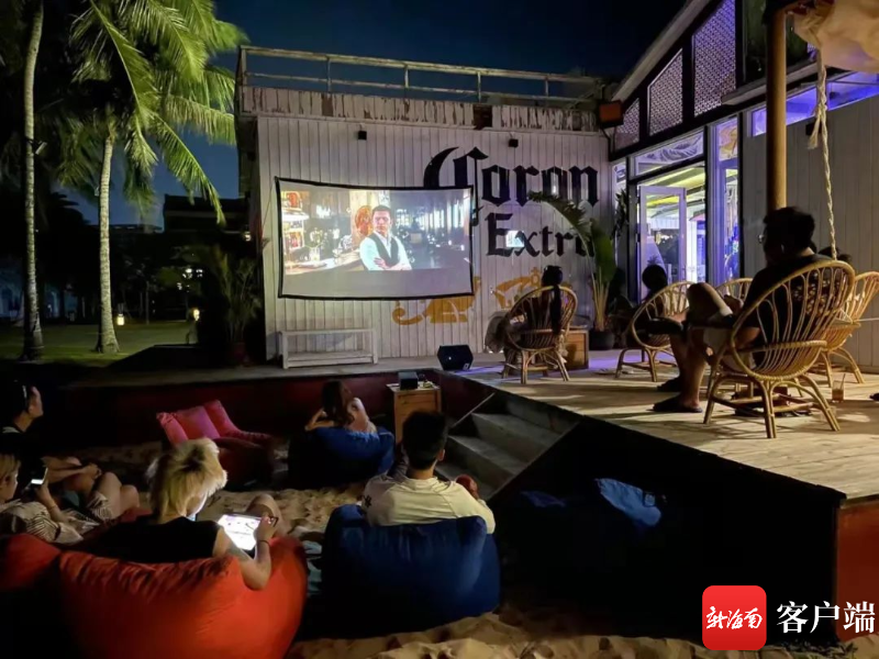 夜幕降臨,游客在神州半島的沙灘看熒幕電影 萬寧旅文局供圖