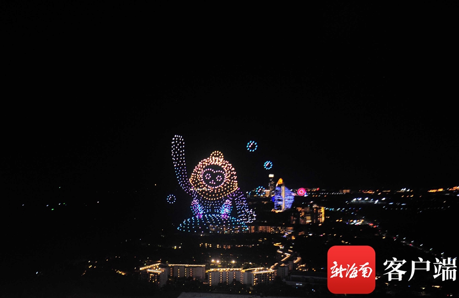 接下來(lái),中國(guó)銀行、交通銀行、中國(guó)工商銀行、中國(guó)農(nóng)業(yè)銀行、中國(guó)南方航空、中免集團(tuán)等消博會(huì)官方合作伙伴及優(yōu)質(zhì)參展商品牌一一亮相,顏色繽紛、形象震撼的無(wú)人機(jī)表演秀引起現(xiàn)場(chǎng)觀眾陣陣歡呼。隨即,穿著絢爛色彩潛水服、頭頂佩戴探照燈,等待開啟對(duì)深海的探索的3D立體造型吉祥物潛水猿重磅登場(chǎng)。惟妙惟肖的3D 吉祥物造型無(wú)人機(jī)表演畫面,也讓三亞市民趙佳印象深刻:“這是我第一次看這么大規(guī)模的無(wú)人機(jī)表演秀,畫面很精彩,視覺很震撼,也讓我更加了解和期待消博會(huì)。”