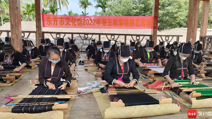 不僅如此,為進一步促進文旅融合發(fā)展,提振旅游經(jīng)濟,東方市旅文局、東方市文化館在東方江邊鄉(xiāng)白查村船型屋旅游景區(qū),組織開展2022年黎族傳統(tǒng)紡染織繡技藝研學之旅活動暨東方市文化館第五期黎族傳統(tǒng)紡染織繡技藝培訓班。