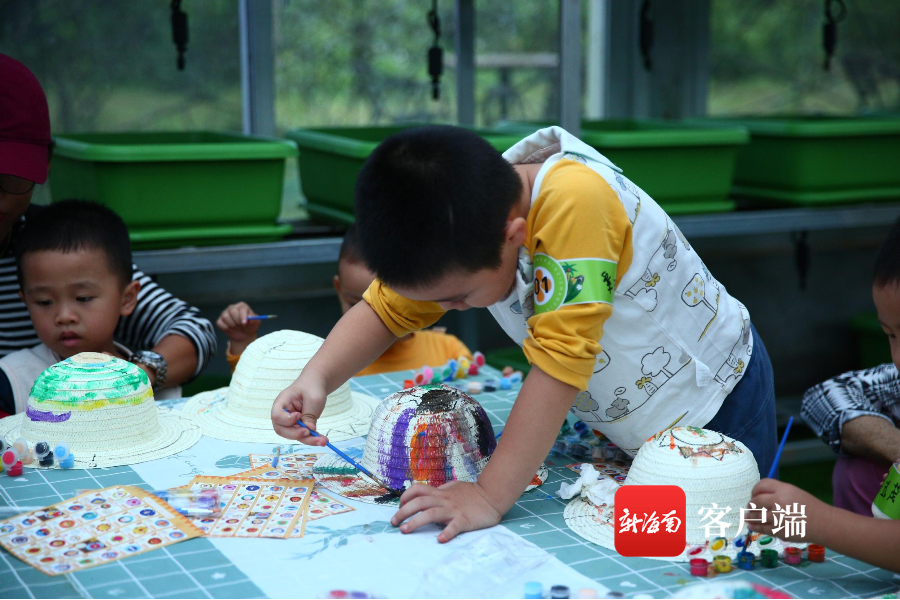 活動現場,小朋友們紛紛拿起畫筆手繪草帽。海口市旅文局供圖