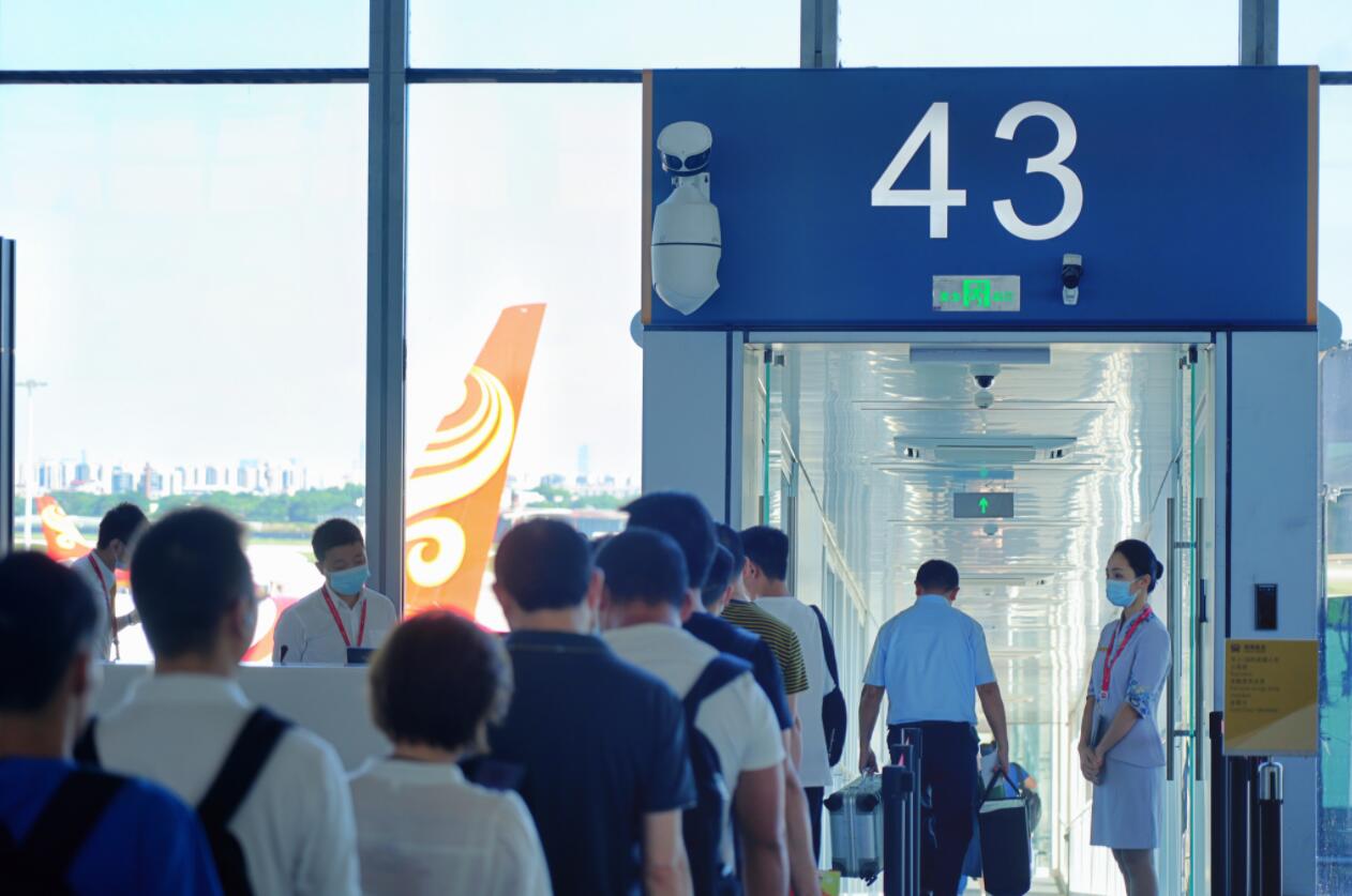 旅客有序登機(jī)。海口美蘭國際機(jī)場供圖